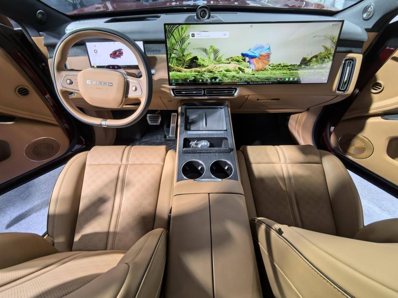 首先,在智能座舱层面,星途EX7搭载包含6K 30英寸寰宇一体屏、24吋W-HUD在内的多个屏幕,营造了不错的科技氛围感,而AI灵犀智舱2.0以8295P芯片为核心,集成超60个生态应用,基于高算力赋能,让交互与屏幕流转体验更加迅捷、流畅。